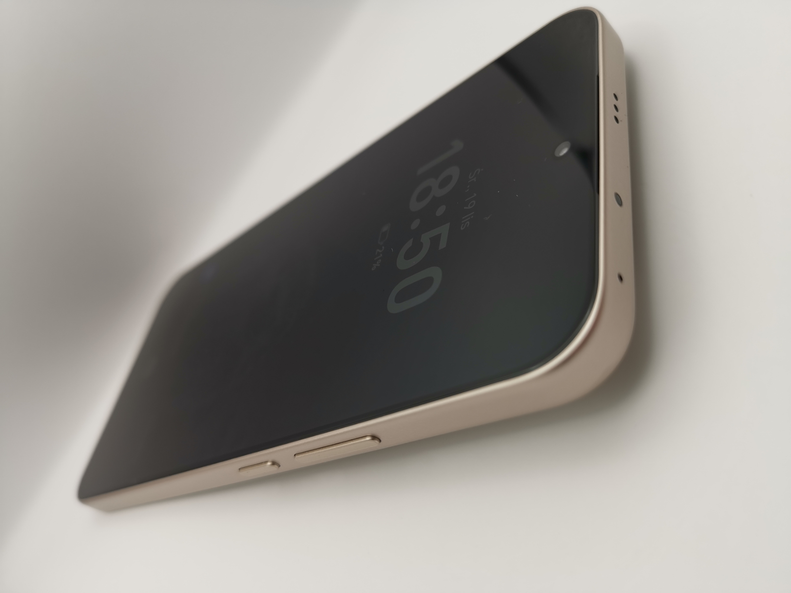 Bo oczne ramki również są matowe, co całości dodaje bardzo eleganckiego wyglądu w połączeniu z tym obłędnym kolorem. Teraz sobie zerkniemy, co dzieje się na krawędziach. Prawa krawędź urządzenia została wyposażona w przyciski głośności oraz przycisk wybudzania. Lewa natomiast jest całkowicie czysta. Górna krawędź prezentuje czujnik podczerwieni, głośnik i mikrofon, a dolna wejście USB C, slot na karty SIM, a także kolejny głośnik i mikrofon. Certyfikaty znajdziemy na matowych pleckach smartfona.