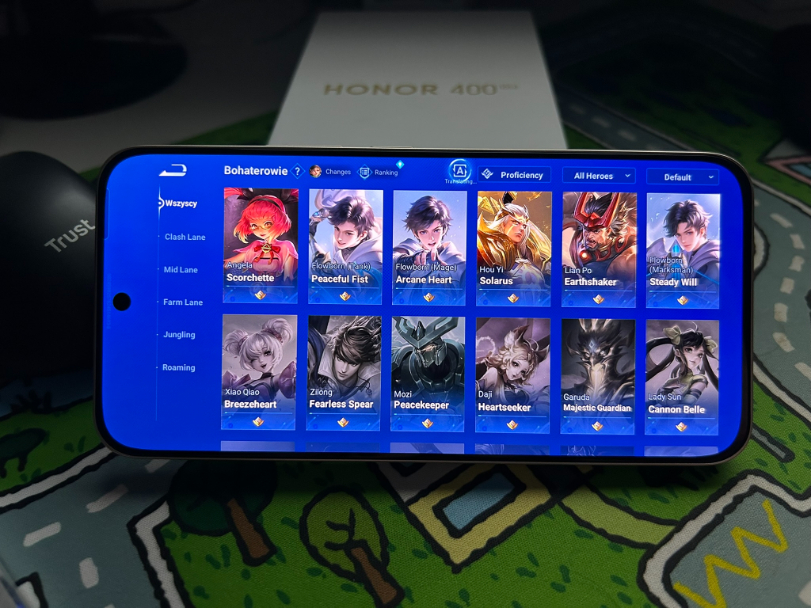 Złota piękność została wykorzystana do powrotu na arenę Honor of Kings. Telefon z układem Snapdragon 7 Gen 3 wykazuje przyzwoitą wydajność, jeśli chodzi o tytuły, które sprawdzałam. Dzięki optymalizacji grzewczej smartfon utrzymuje umiarkowaną temperaturę nawet przy dłuższych sesjach. Po włączeniu gry mobilnej z boku ekranu pojawia się menu akcji, w którym możemy dostosować wykorzystanie urządzenia do danej chwili i naszych wymagań względem rozgrywki. Opcja bardzo przydatna dla każdego, kto w mobilnych grach spędza sporą ilość czasu.