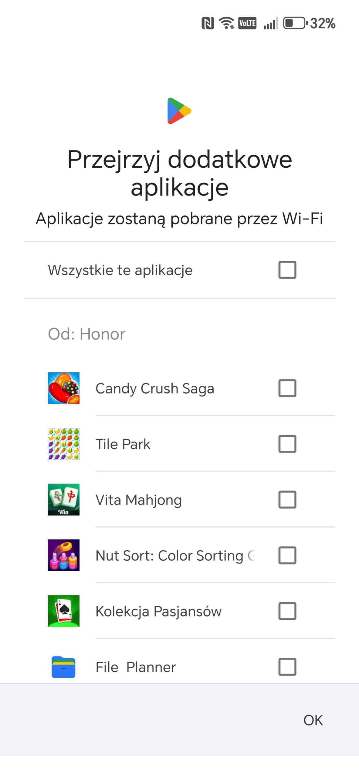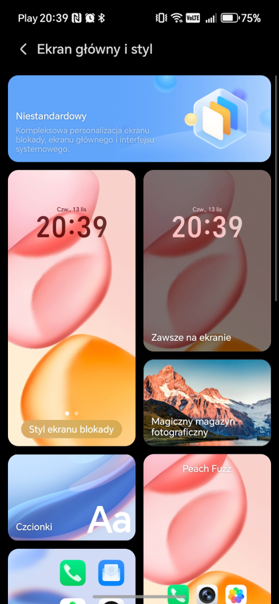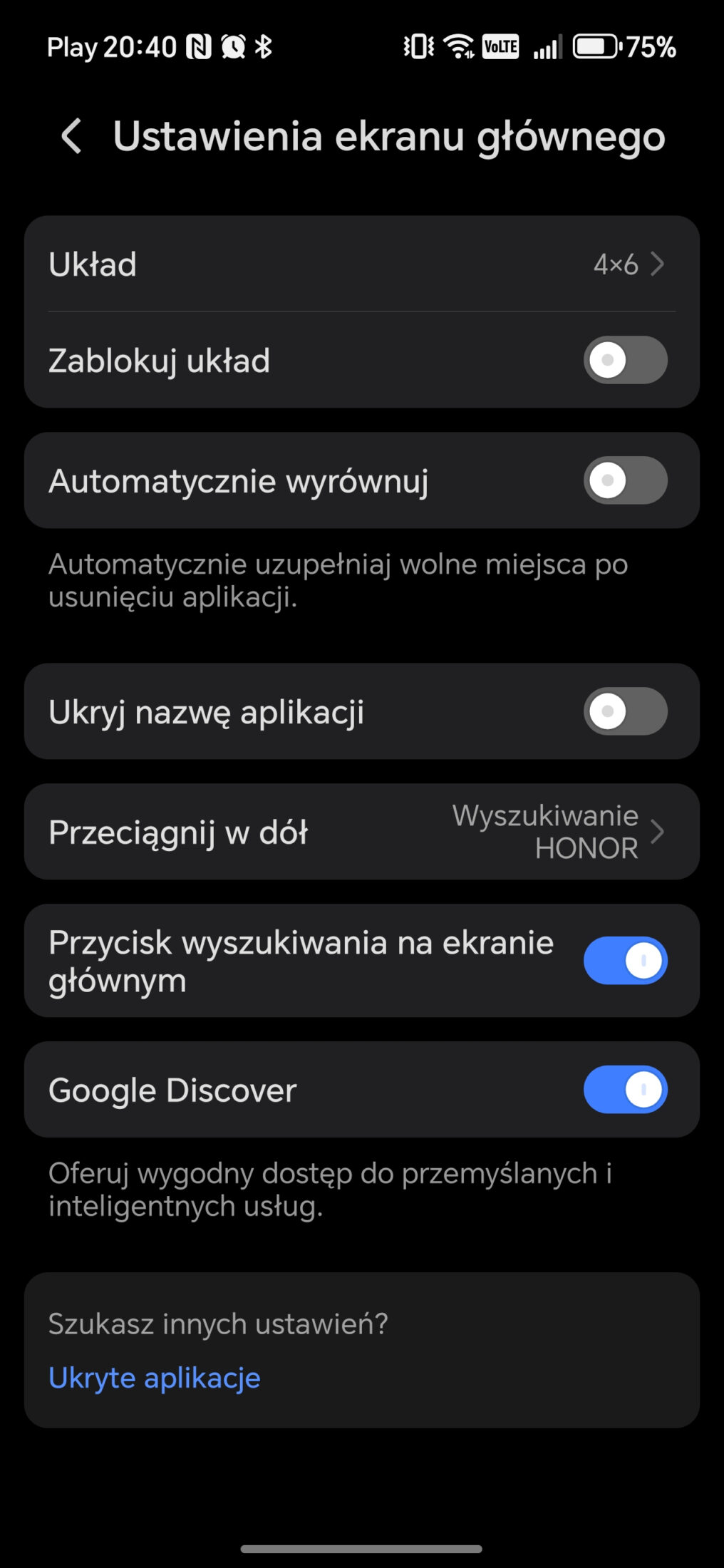 Konfiguracja HONOR 400 przebiega w typowy sposób, podobnie jak w większości nowoczesnych telefonów z Androidem. Po wstępnym ustawieniu podstawowych opcji telefon prosi o zgodę na korzystanie z dodatkowych funkcji AI wbudowanych w urządzenie. Android nie jest całkowicie czysty, ponieważ producent dodał własną nakładkę MagicOS 9.0 oraz kilka dodatkowych aplikacji. W systemie znajdziemy też domyślne kafelki i inne elementy interfejsu, które możemy samodzielnie zmienić. Osobiście nie przepadam za folderami z aplikacjami, więc ich usuwanie zajmuje mi trochę czasu, ale przynajmniej mogę dopasować ekran do własnych potrzeb.