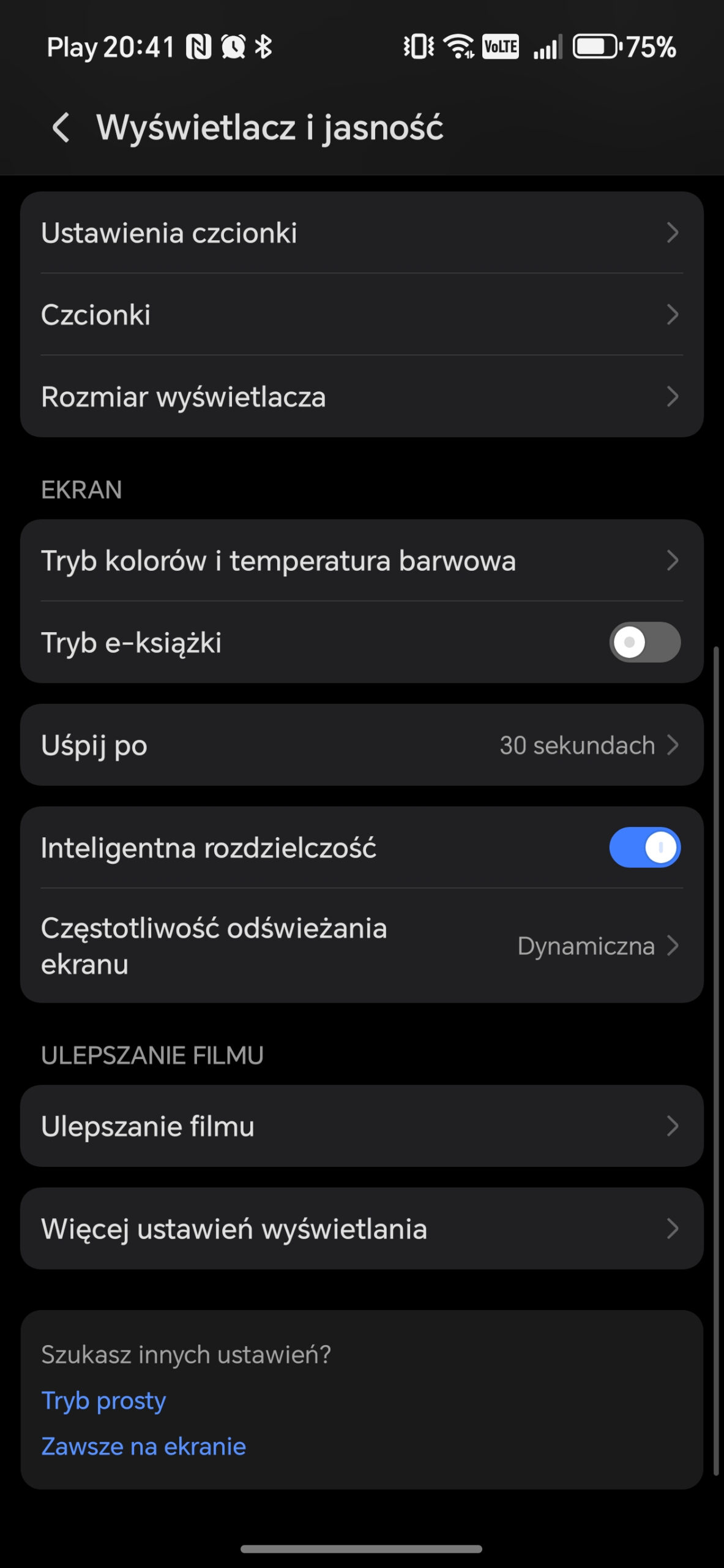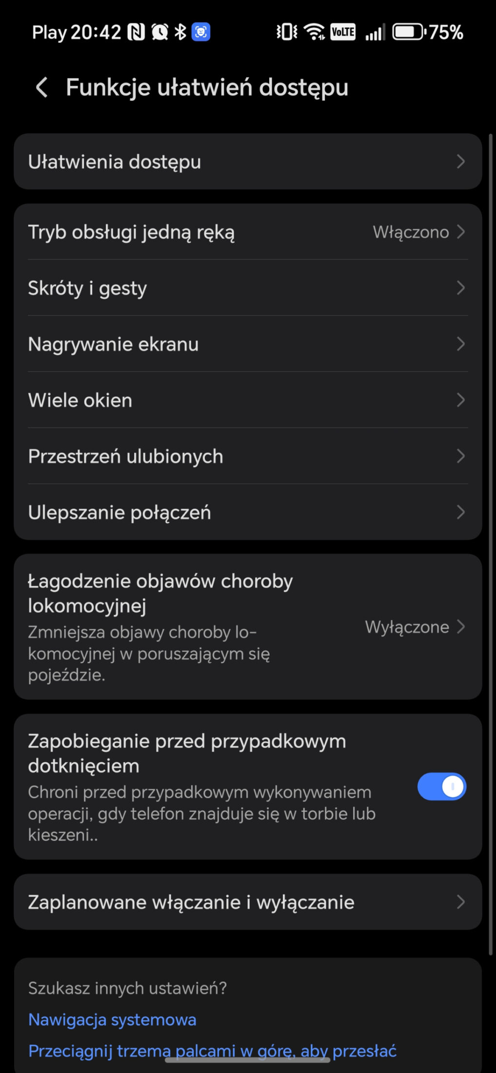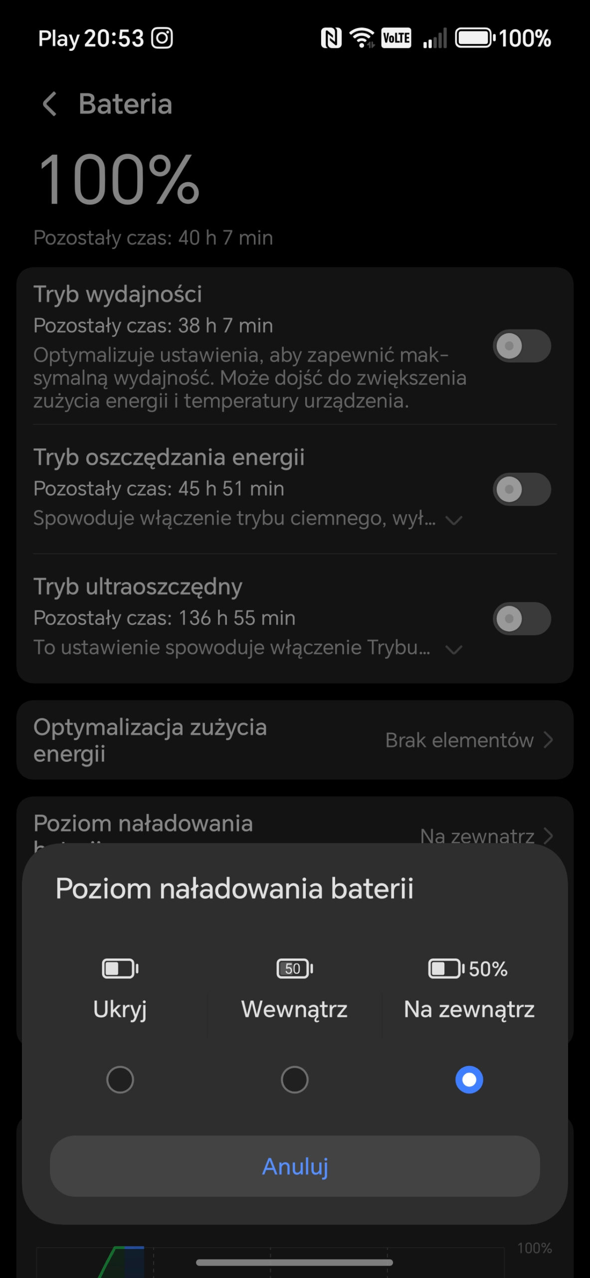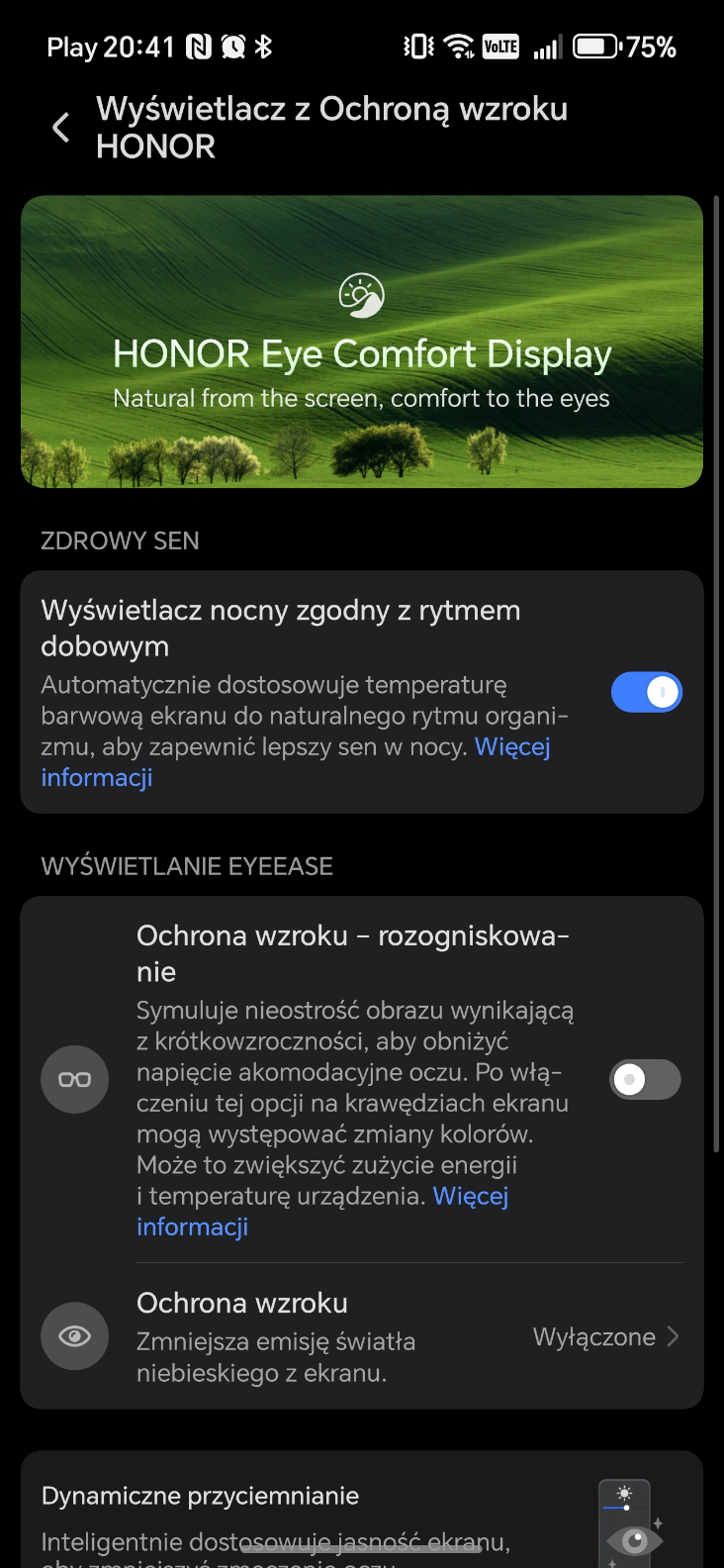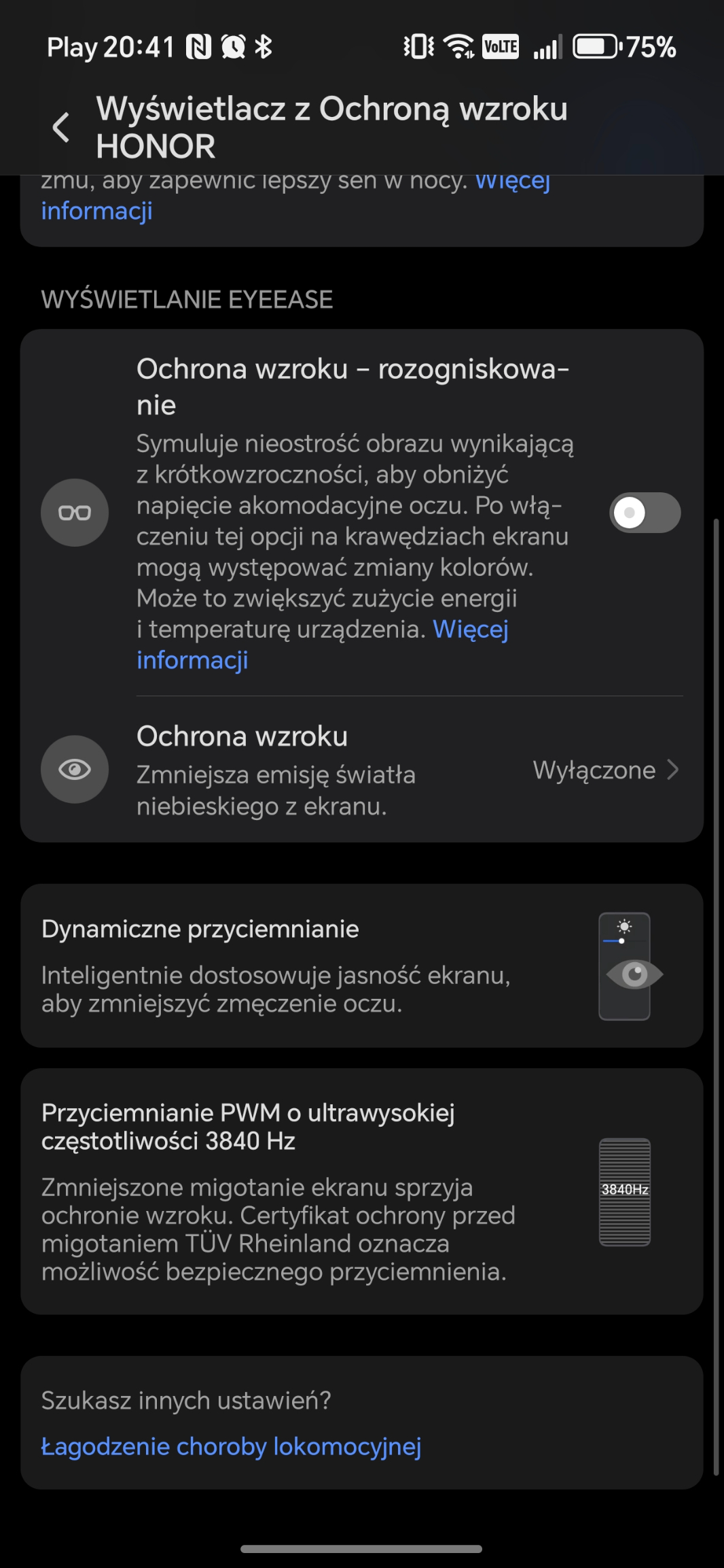 Telefon oferuje również kilka ciekawych rozwiązań, w tym Motion Sickness Relief, który przesuwa punkty na ekranie zgodnie z przeciążeniami, co pomaga utrzymać orientację i zmniejsza nudności podczas jazdy. Do tego Super Rainproof Touch pozwala korzystać z ekranu nawet mokrymi dłońmi. Producent zadbał też o komfort wzroku, ponieważ zastosowano tu 3840 Hz PWM Dimming, redukcję światła niebieskiego, tryb Circadian Night oraz Ultra Dark Mode z minimalną jasnością 1,5 nita. To całkiem sporo udogodnień jak na podstawową wersję serii.