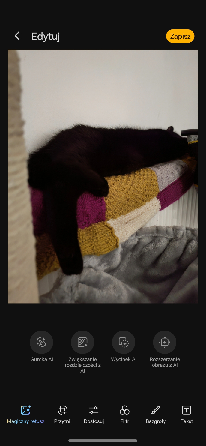 Przedni obiektyw sprawdza się podczas zwykłych wideorozmów czy robienia szelfie. Oferuje wysoką rozdzielczość, więc zdjęcia wyglądają szczegółowo i ostro, zwłaszcza w dobrym świetle. Czasem jednak AI potrafi lekko wygładzić skórę, więc efekt może wydawać się nieco sztuczny.