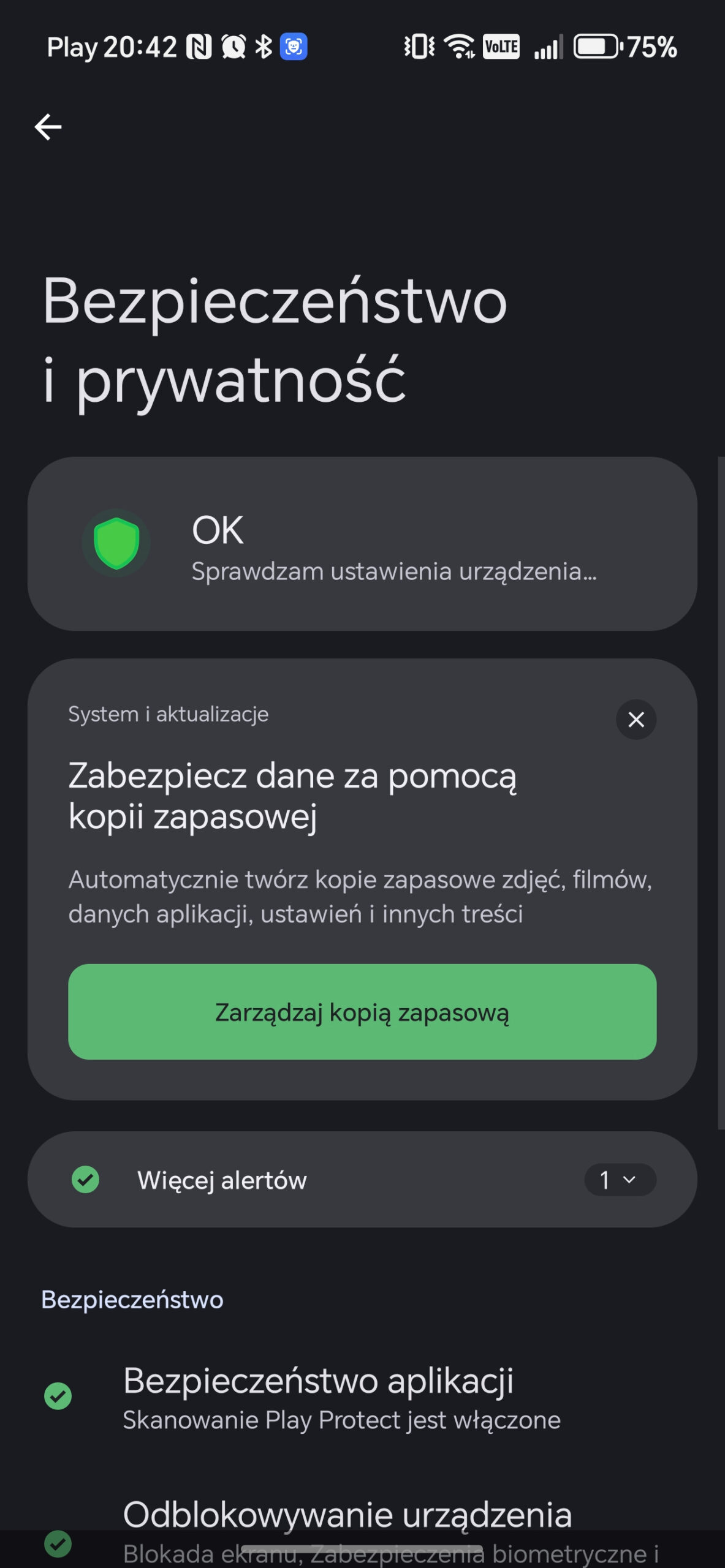 Telefon pozwala na odblokowanie ekranu czytnikiem linii papilarnych umieszczonym pod wyświetlaczem. Oferuje również rozpoznawanie twarzy jako alternatywną metodę biometrycznego zabezpieczenia, choć korzystając z niej, raczej się nie polubiliśmy. Producent zadbał także o fizyczną ochronę, gdyż urządzenie spełnia normę wodoodporności IP65. HONOR 400 działa pod nakładką systemową MagicOS, który oferuje szereg zabezpieczeń prywatności w ustawieniach. Smartfon posiada także 5-gwiazdkową, certyfikowaną odporność na upadki (certyfikat SGS).