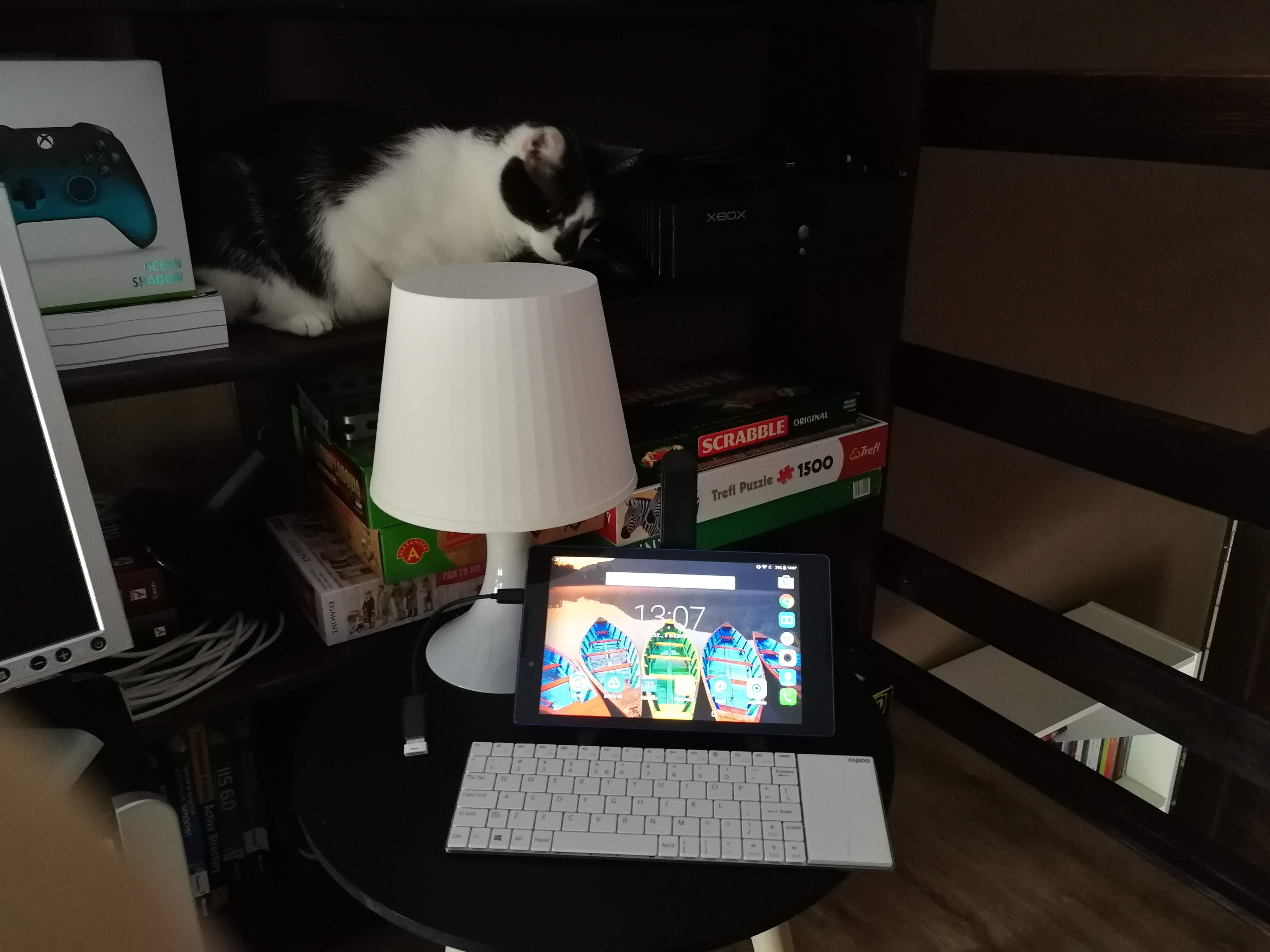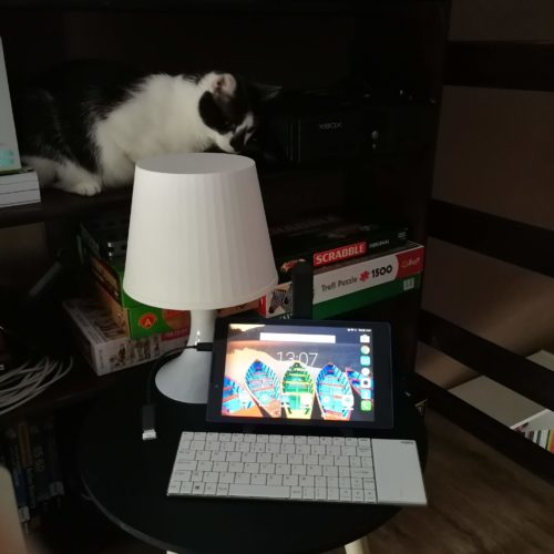 Wydaje mi się, że klawiatura Rapoo E2710 będzie idealna do pracy w ekstremalnych warunkach – i do takich zadań ją polecam. Właśnie dlatego musiałam wejść aż na antresolę, wziąć tę klawiaturę i tablet, i zmusić się do pisania. Wcale nie chodzi o to, że z klawiaturą jest coś nie tak. Zdarzają się przecież takie sytuacje, w których może mieć zastosowanie, na przykład: jadę pociągiem, mam przy sobie telefon i tablet, ale nie mam laptopa. Nagle dostaję zlecenie napisania więcej niż dwóch zdań w statusie na fejsie. Oczywiście, mogę zrobić to na tych dwóch sprzętach, które mam ze sobą. Ponieważ jednak nie lubię pisać dłuższych form na klawiaturze ekranowej, wyciągam klawiaturę z torebki (!) i… wiadomo, co robię. Lepiej mi się pisze z klikiem…