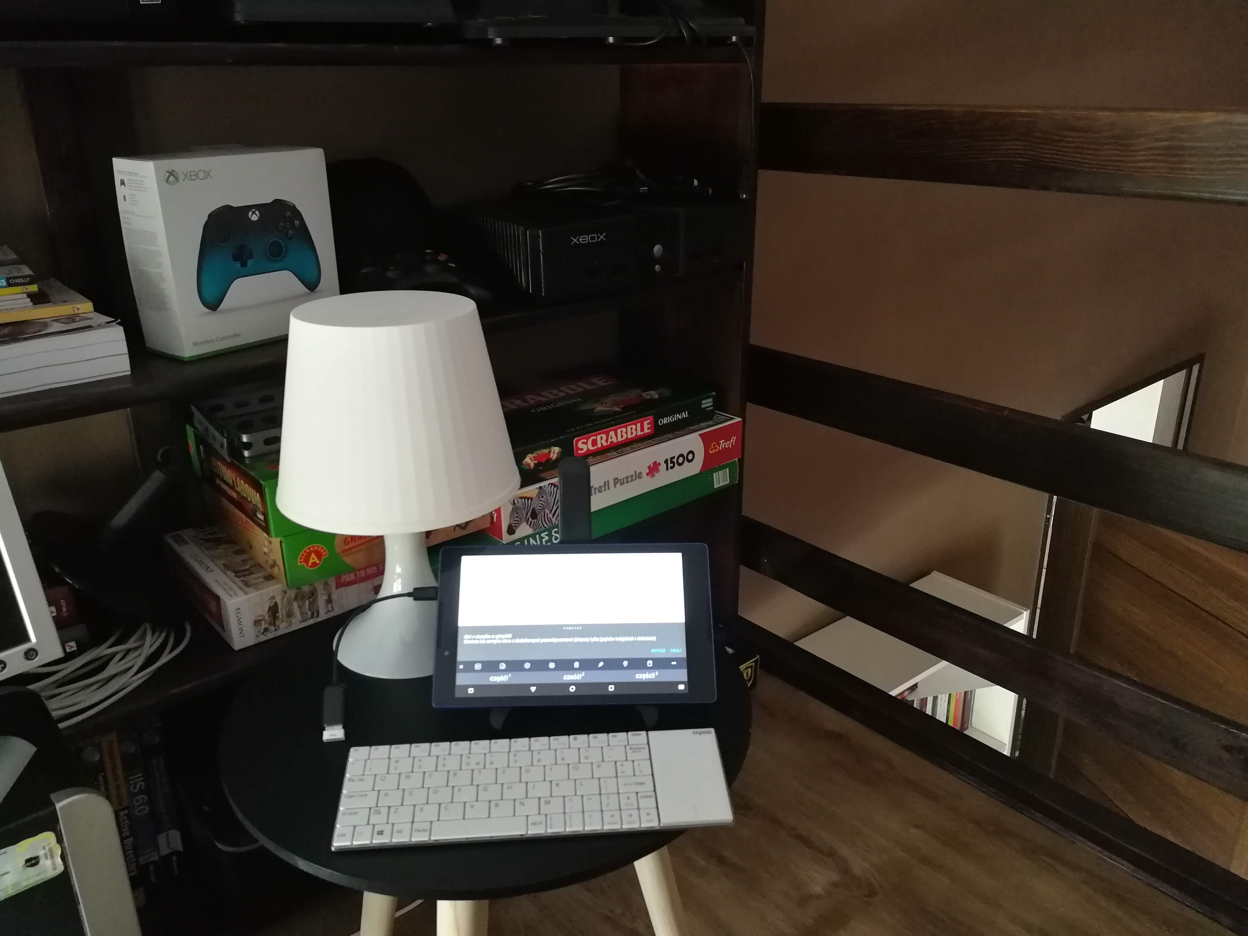 Ktoś mocno się pomylił, robiąc tak małą i fajną klawiaturę na kabel. Niby bez kabla, ale na kabel? Dziewczyno, co ty piszesz – możecie się zastanawiać. Bezprzewodowa, bo nie musicie „trzymać jej na kablu” jak telefonu podczas ładowania, ale jeśli chcecie używać jej z tabletem, to podpinacie do niego przejściówkę (którą musicie sobie dokupić), o ile nie ma on sam w sobie wejścia USB (typu A). Jeśli ma, wpinacie tylko mikroodbiornik. Aż chce się zakrzyknąć – gdzie jest Bluetooth?!