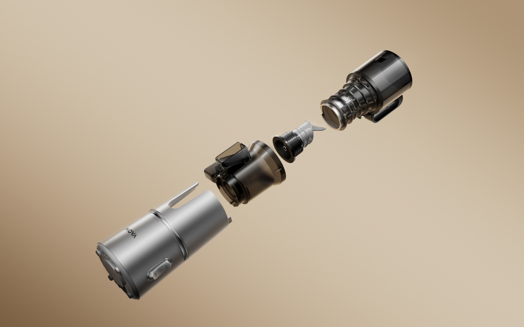 MOVA SJ10 wykorzystuje system dwustopniowego wałka ślimakowego z gęstą spiralą tłoczącą. Pierwszy stopień rozdrabnia składniki, a drugi wyciska je dokładnie, co zmniejsza ilość pulpy w soku. Podwójne filtry dodatkowo oczyszczają napój z resztek włókien.