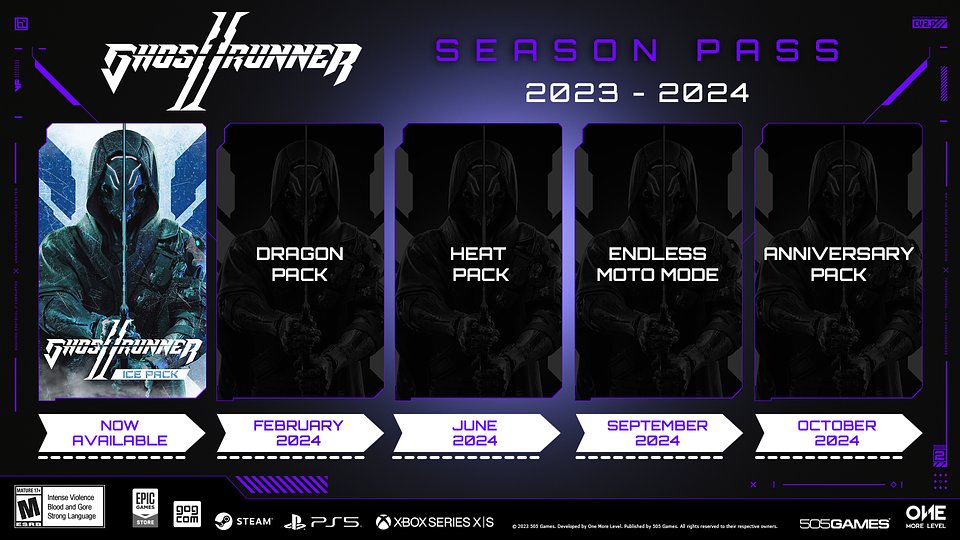 DLC wycenione zostało na ok. 20.00 PLN. Ice Pack można nabyć również jako część przepustki sezonowej kosztującej 89.00 PLN, w której skład wchodzą cztery dodatki oraz jeden specjalny tryb rozgrywki. Dalsze plany rozwoju Ghostrunner 2 obrazuje przygotowana przez deweloperów grafika.