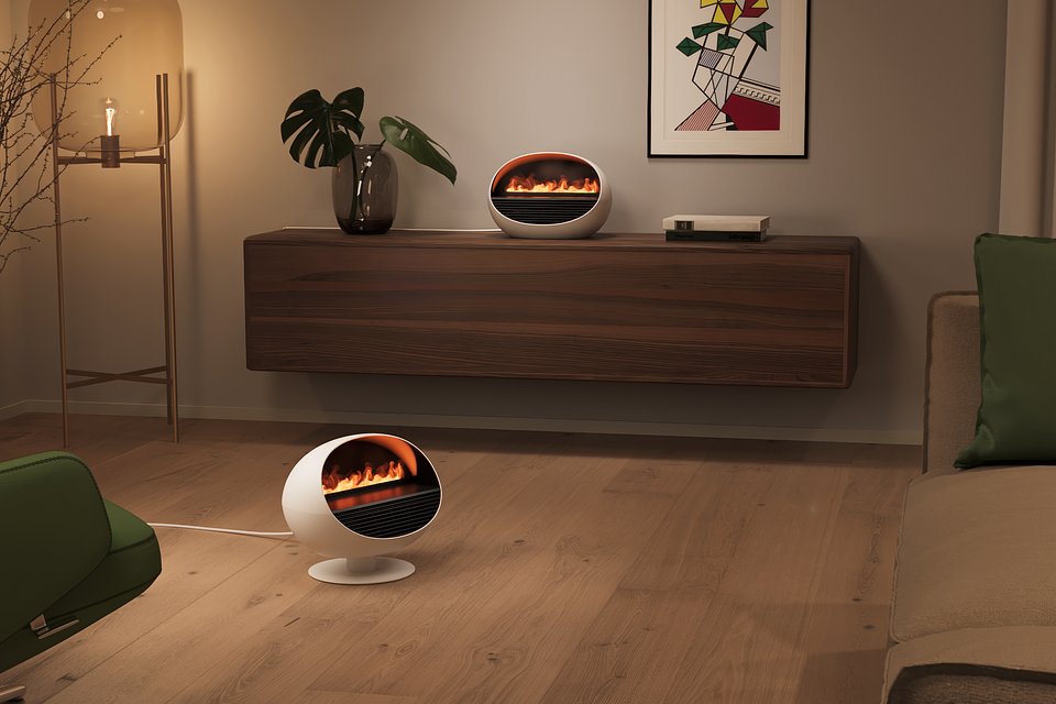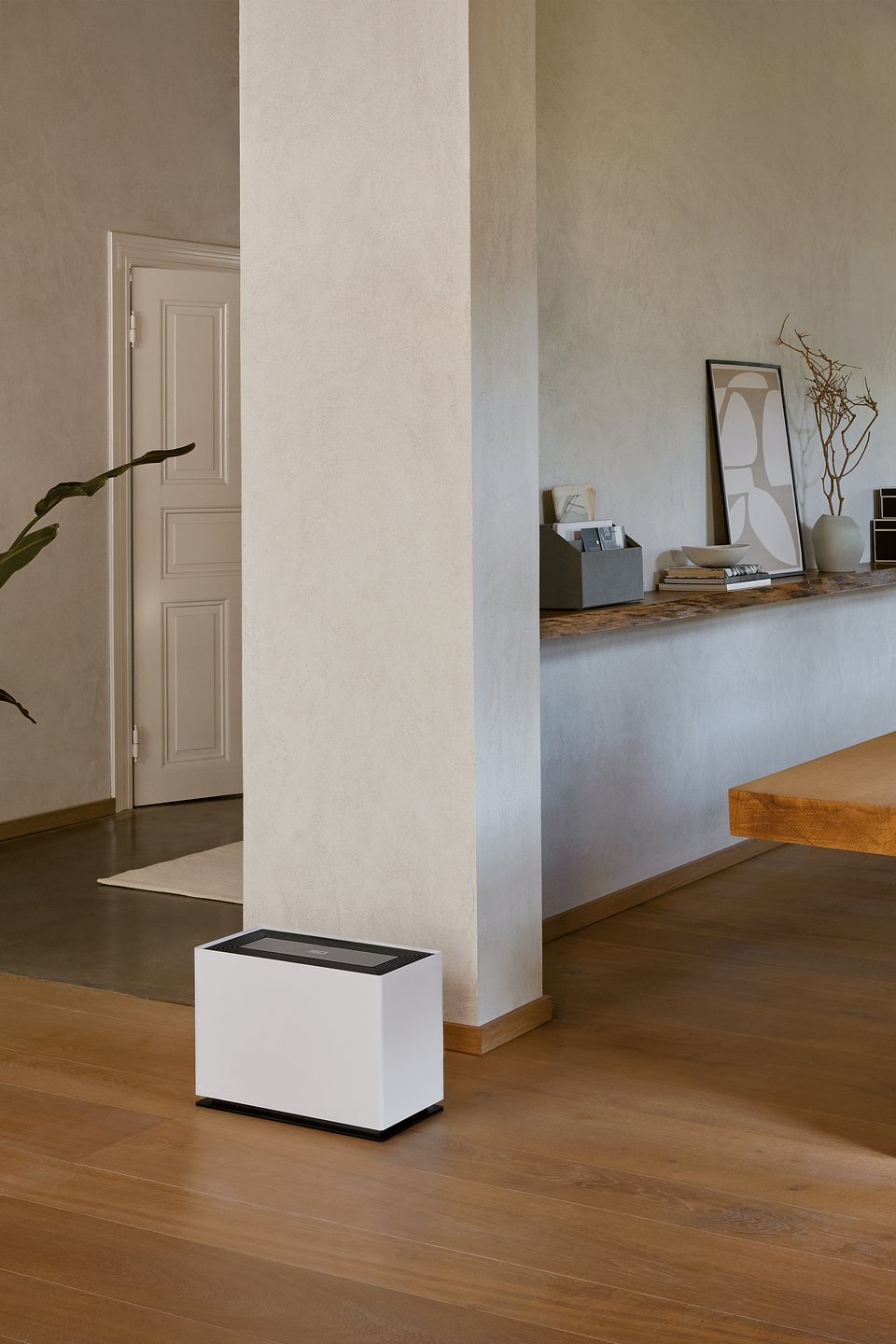 Erik łączy trzy funkcje: termowentylatora, kominka elektrycznego i dyfuzora zapachowego. Jego prosta forma pasuje do różnych wnętrz, a realistyczny efekt płomienia wprowadza przytulny nastrój bez ognia i sadzy.