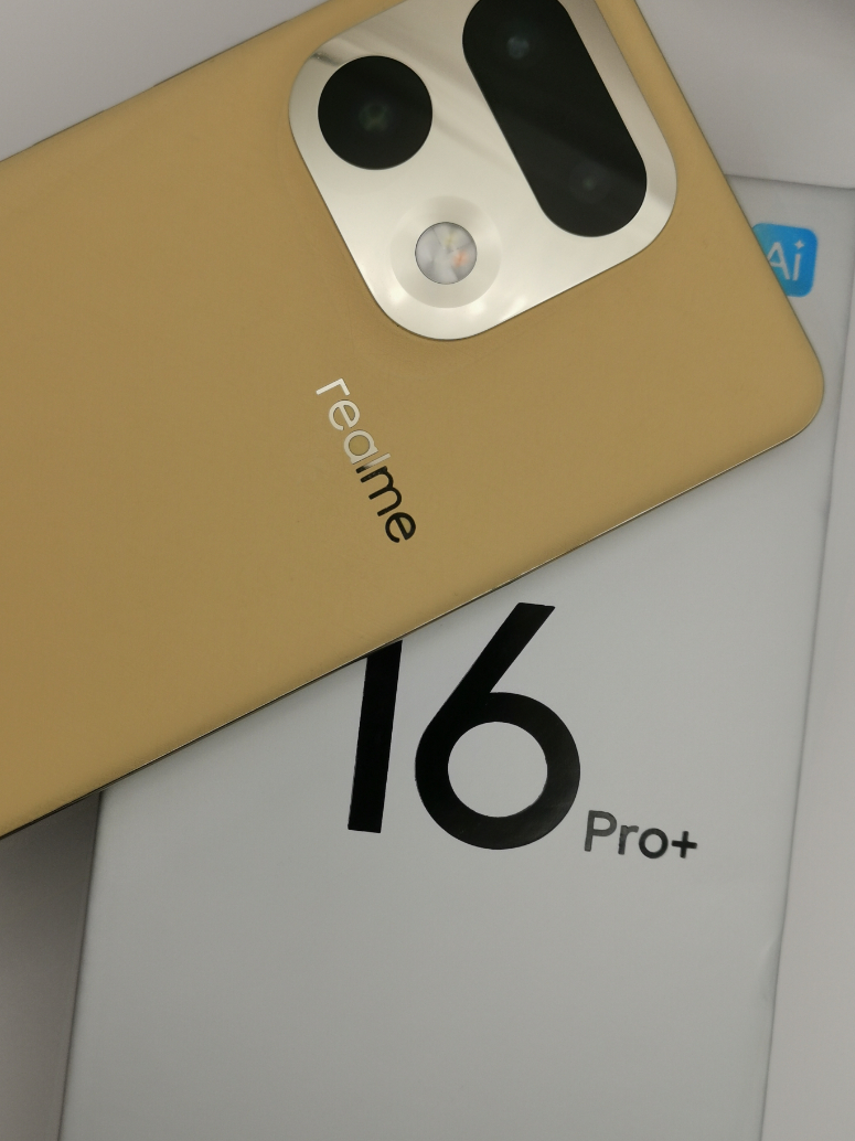 - smartfon realme 16 Pro+ w kolorze złotym Master Gold (dostępny także w kolorze szarym Master Grey)