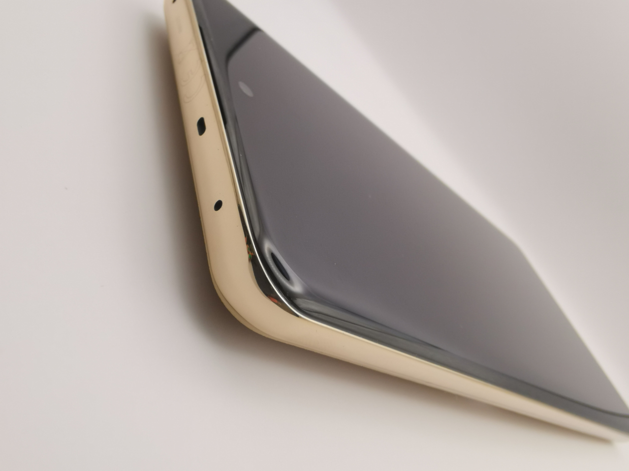 To, co rzuca się w oczy już po otwarciu pudełka to zaokrąglony ekran, od którego większość producentów oddaliła się, a niektórzy całkiem je porzucili. Całość prezentuje opływowe kształty, które dobrze leżą w ręce i sprawiają wrażenie delikatnej ekskluzywności. Na testy dotarł do mnie model w złotym kolorze Master Gold, który w dotyku przypomina materiał zbliżony do ekoskóry. To w prawdzie biopolimery pochodzenia organicznego, co pozostawia na dłoniach całkiem ciekawe odczucie, choć ja i tak od razu wpakowałam telefon w dedykowane etui. Chęć ochrony smartfona jest u mnie zawsze na pierwszym miejscu. Pełne wyposażenie pudełka to: