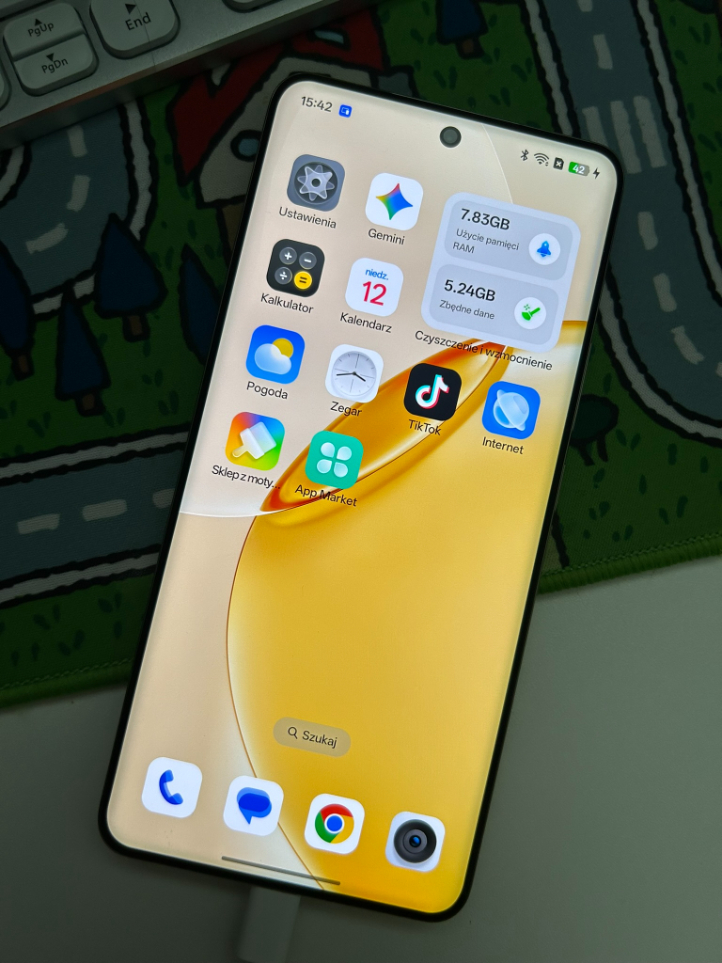 Nie mogło się obyć bez ogarniania jajek na farmie w grze na telefon. Urządzenie korzysta z procesora Snapdragon 7 Gen 4 oraz szybkiej pamięci, co przekłada się na bardzo płynne działanie systemu i szybkie uruchamianie aplikacji. W codziennym użytkowaniu wszystko działa bez przycięć, a nawet bardziej wymagające zadania i działanie kilku aplikacji w tle nie stanowi dla niego problemu. W trakcie rozgrywki wszystko działa płynnie, nawet przy wysokim odświeżaniu ekranu. Nie brakuje po dłuższym czasie poczucia, że telefon jest znacznie cieplejszy, niż powinien być. W końcu daje z siebie całe 100% możliwości dla użytkownika.