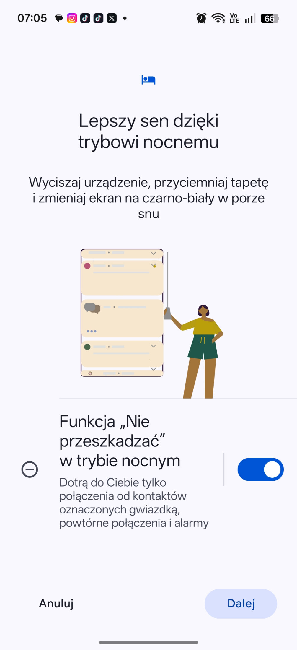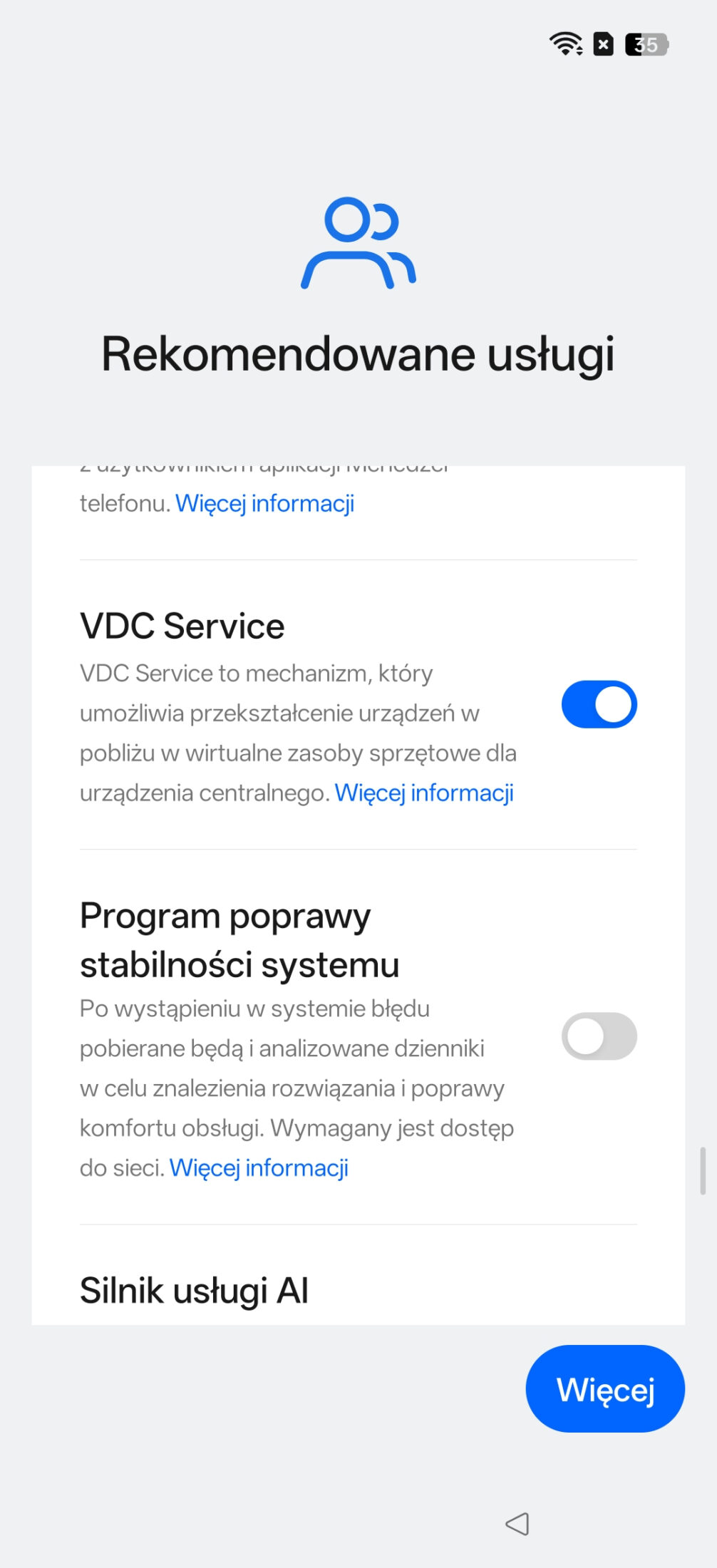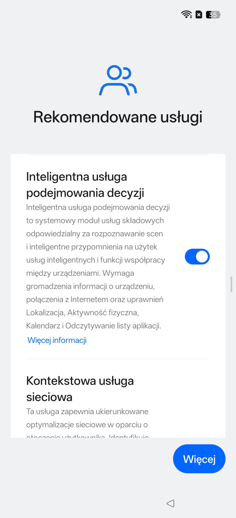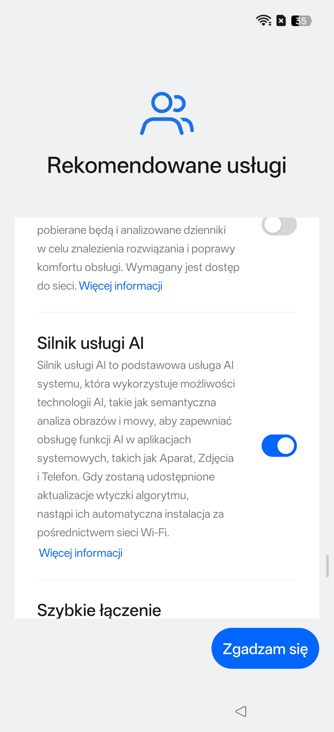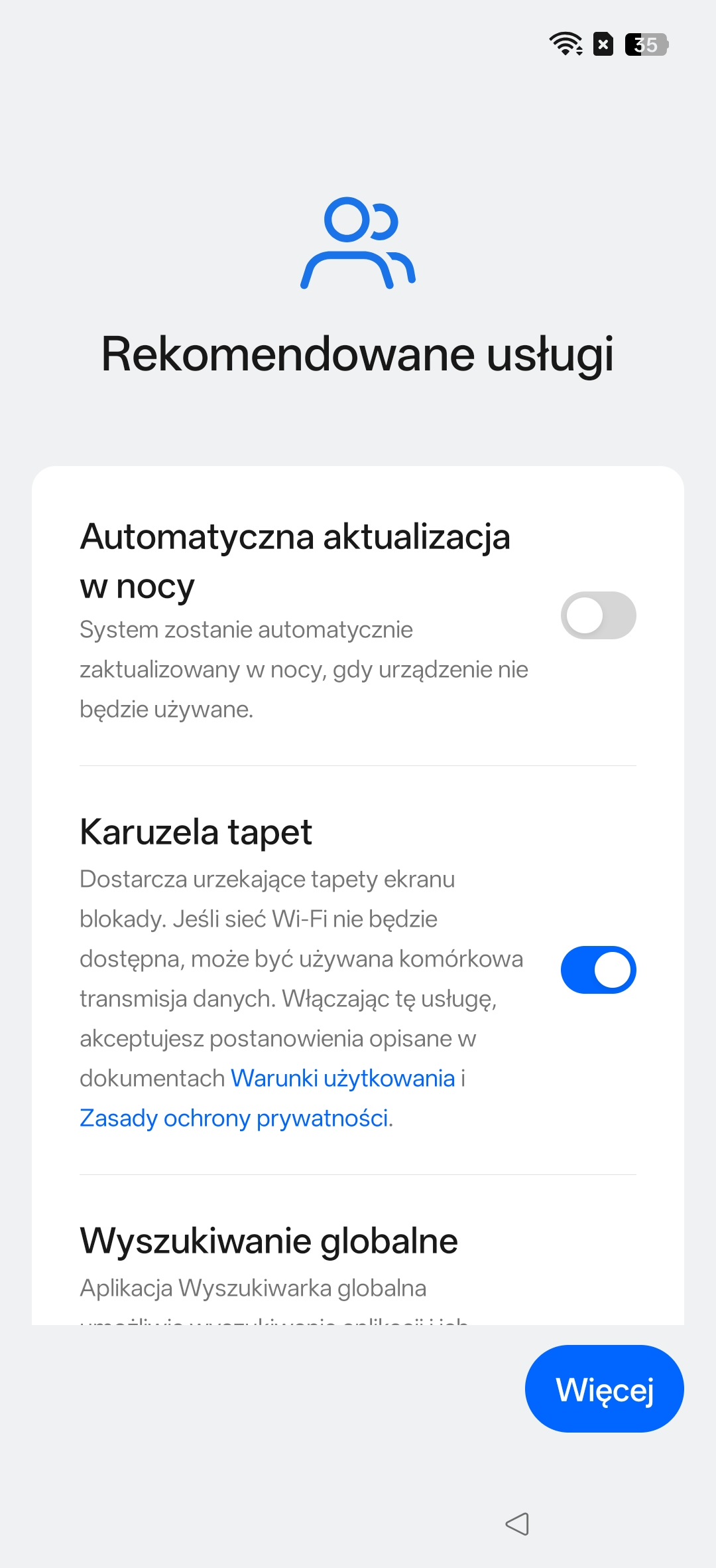 Konfiguracja wstępna realme 16 Pro+ przebiega sprawnie jak nimal w każdym przypadku urządzeń z systemem Android. Dedykowana nakładka realme UI 7.0 sprawnie prowadzi użytownika przez kolejne etapy. Po wybraniu języka oraz połączeniu z siecią Wi-Fi urządzenie proponuje szybki transfer danych ze starego telefonu za pomocą dedykowanego asystenta (z czego ja już od dawna w przypadku testów nie korzystam). Użytkownik niemal natychmiast otrzymuje propozycję personalizacji interfejsu, a opcji tych jest całkiem sporo i każdy z pewnością znajdzie ustawienie idealnie dopasowane do niego.