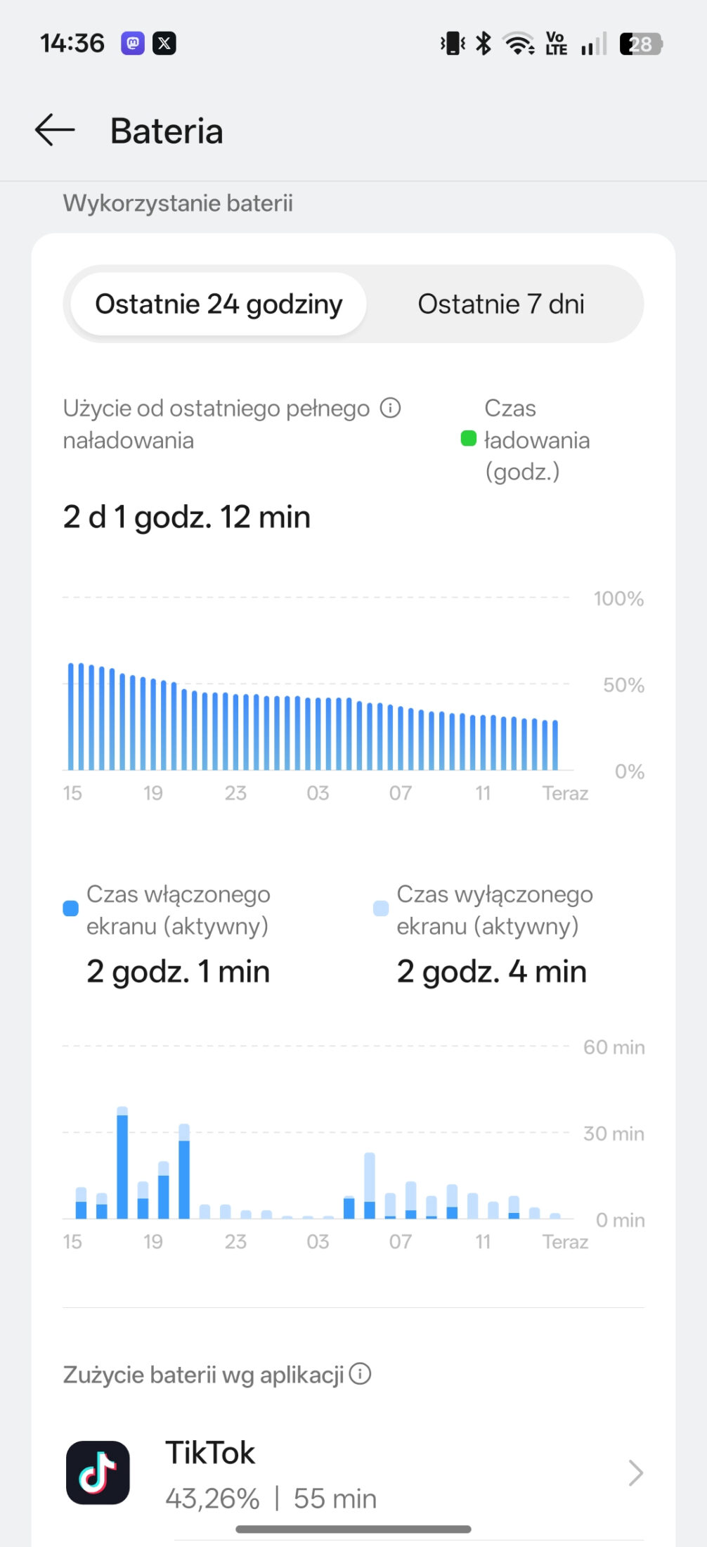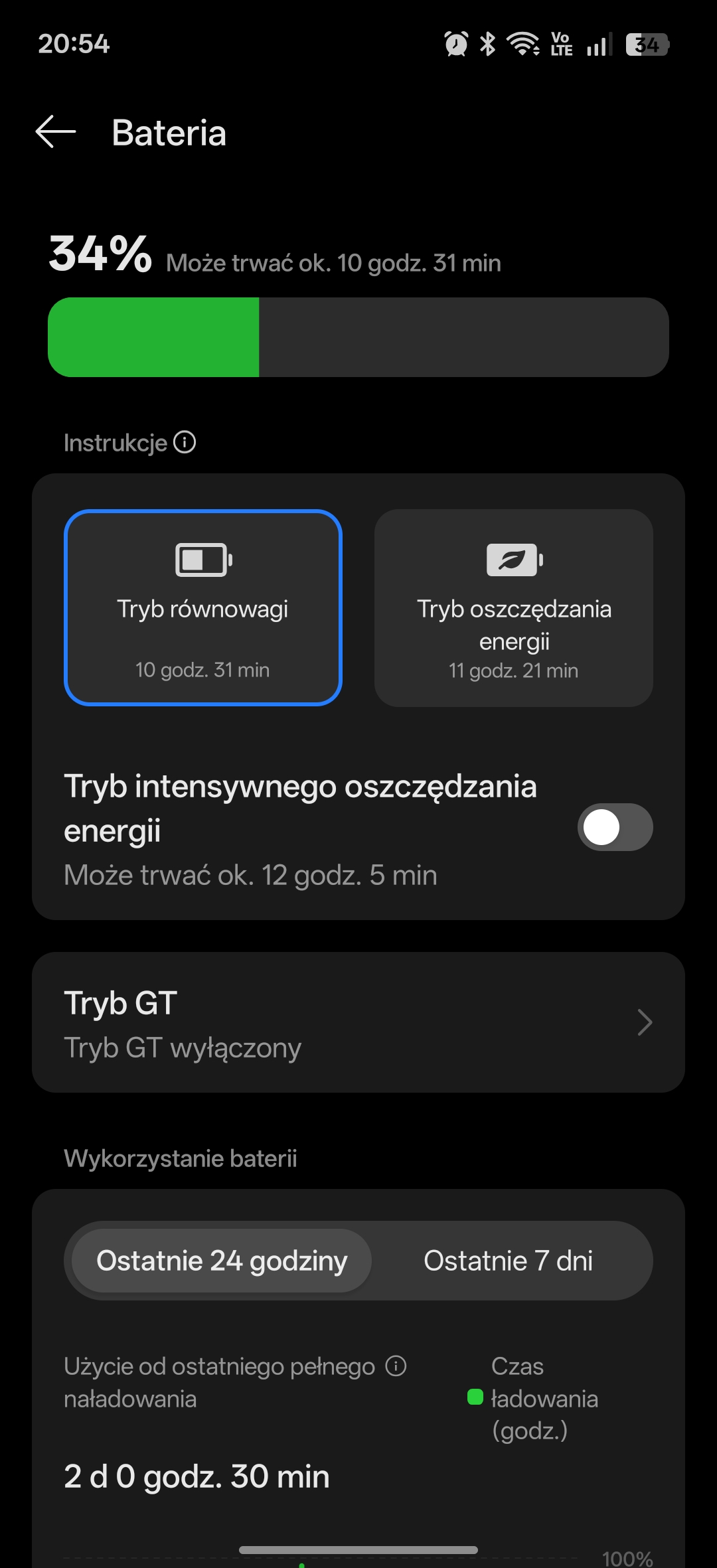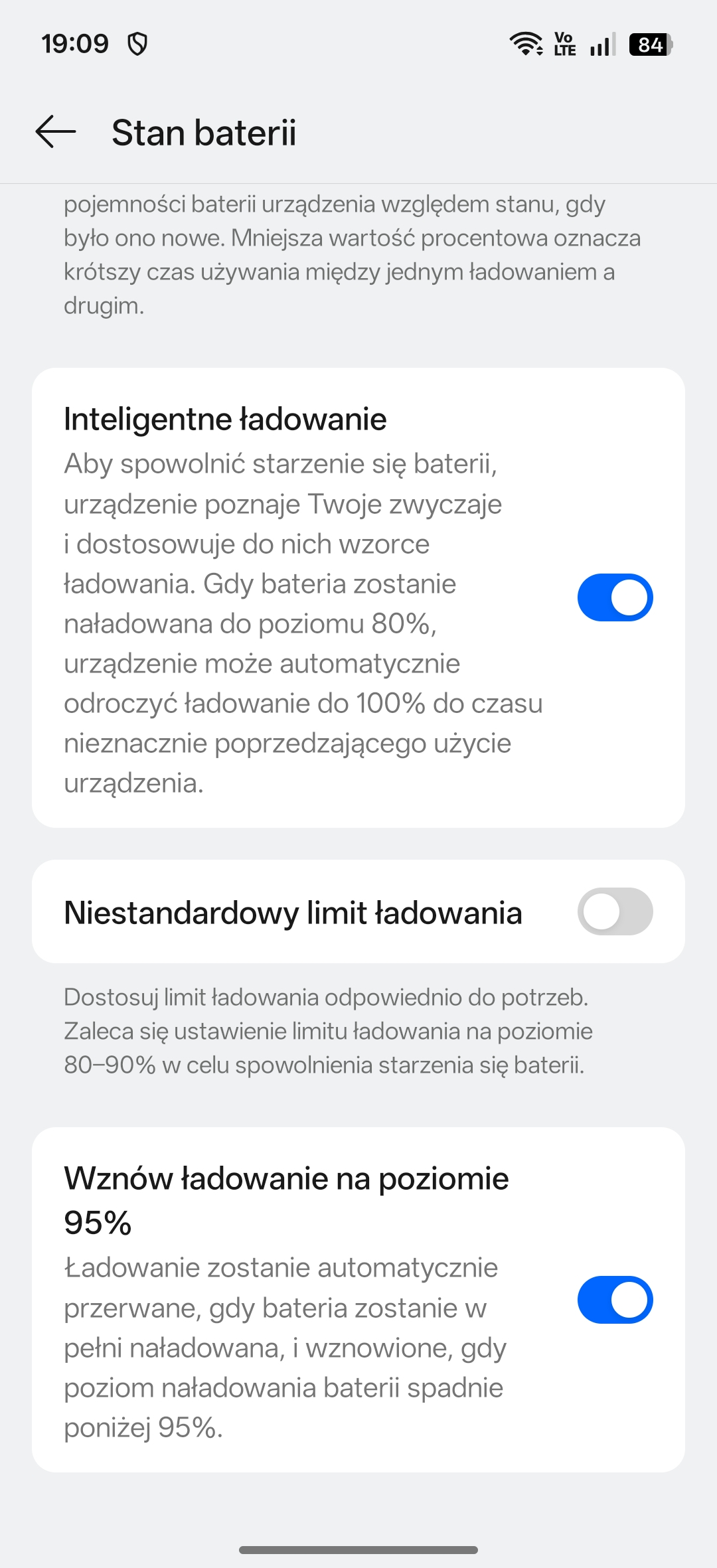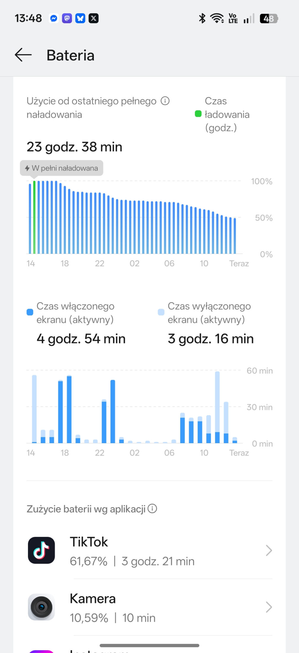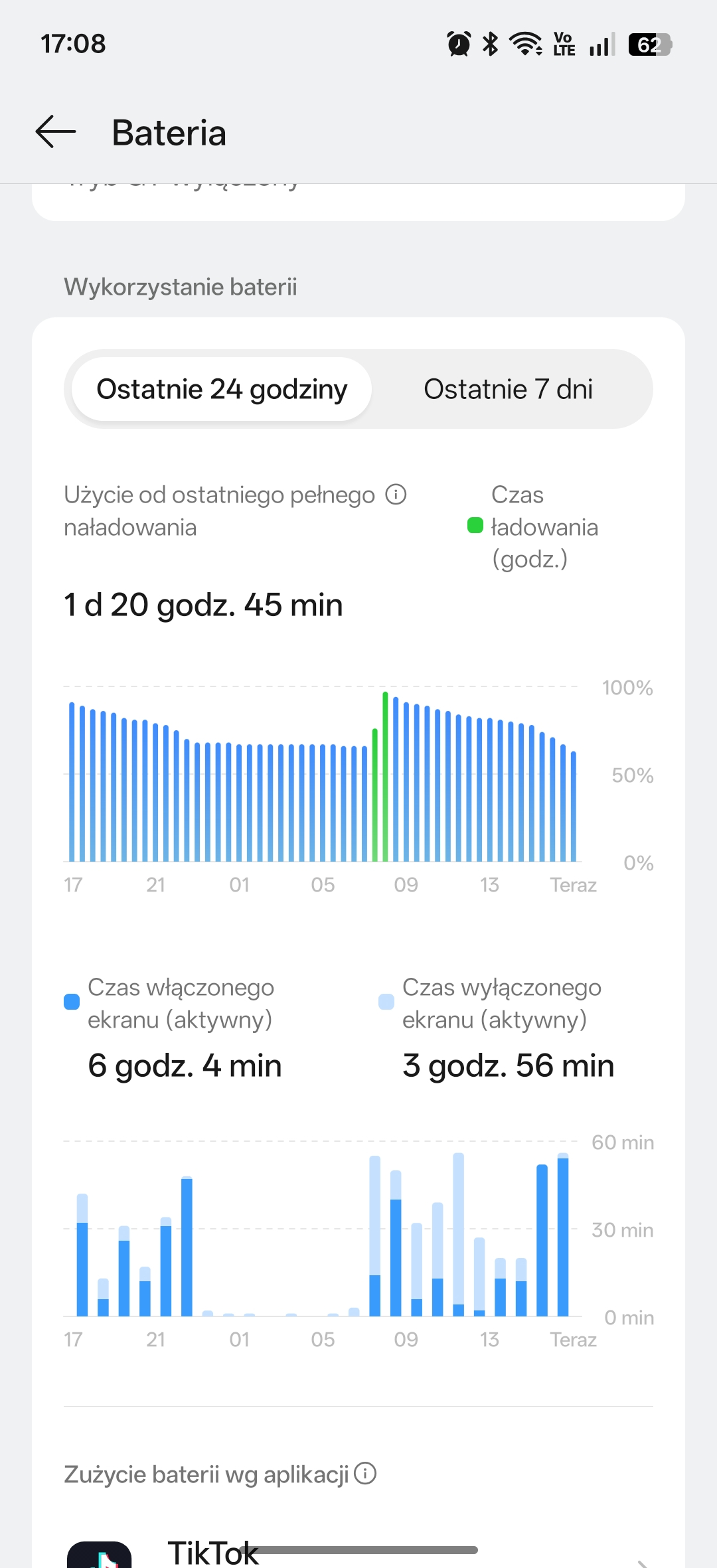 Mocną stroną urządzenia zdecydowanie jest bateria. realme 16 Pro+ wykorzystuje akumulator krzemowo-węglowy o pojemności 7000 mAh, a jednocześnie zachowuje przy tym naprawdę smukłą budowę. W praktyce urządzenie sprawdza się jako sprzęt na długie godziny pracy. Trudno rozładować go w ciągu jednego dnia nawet przy intensywnym użytkowaniu, więc zwykle kończyło się na dwóch do nawet dwóch i pół dnia na jednym ładowaniu. Przyznaję, że czasami po prostu nie miałam ochoty siedzieć na telefonie, więc z pewnością i to miało wpływ na czas działania.