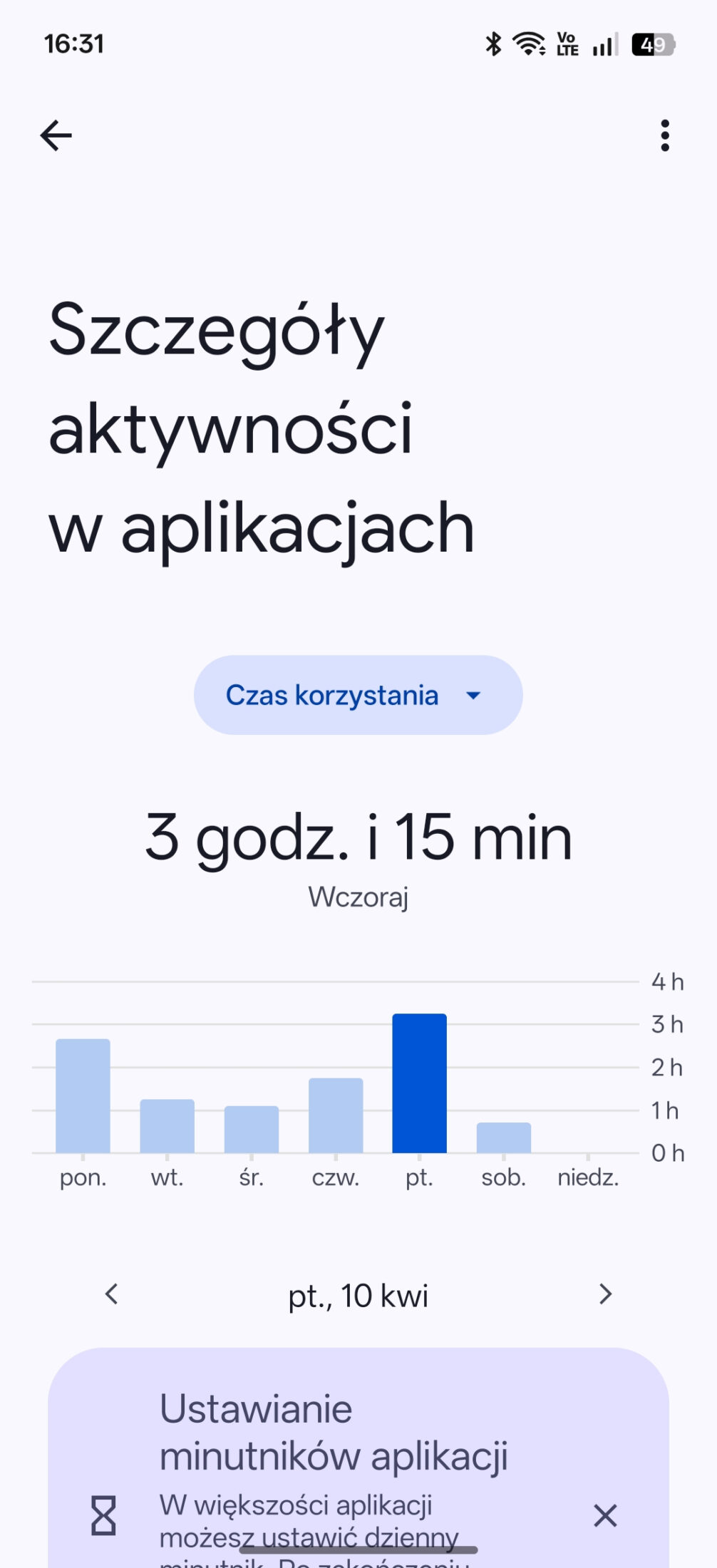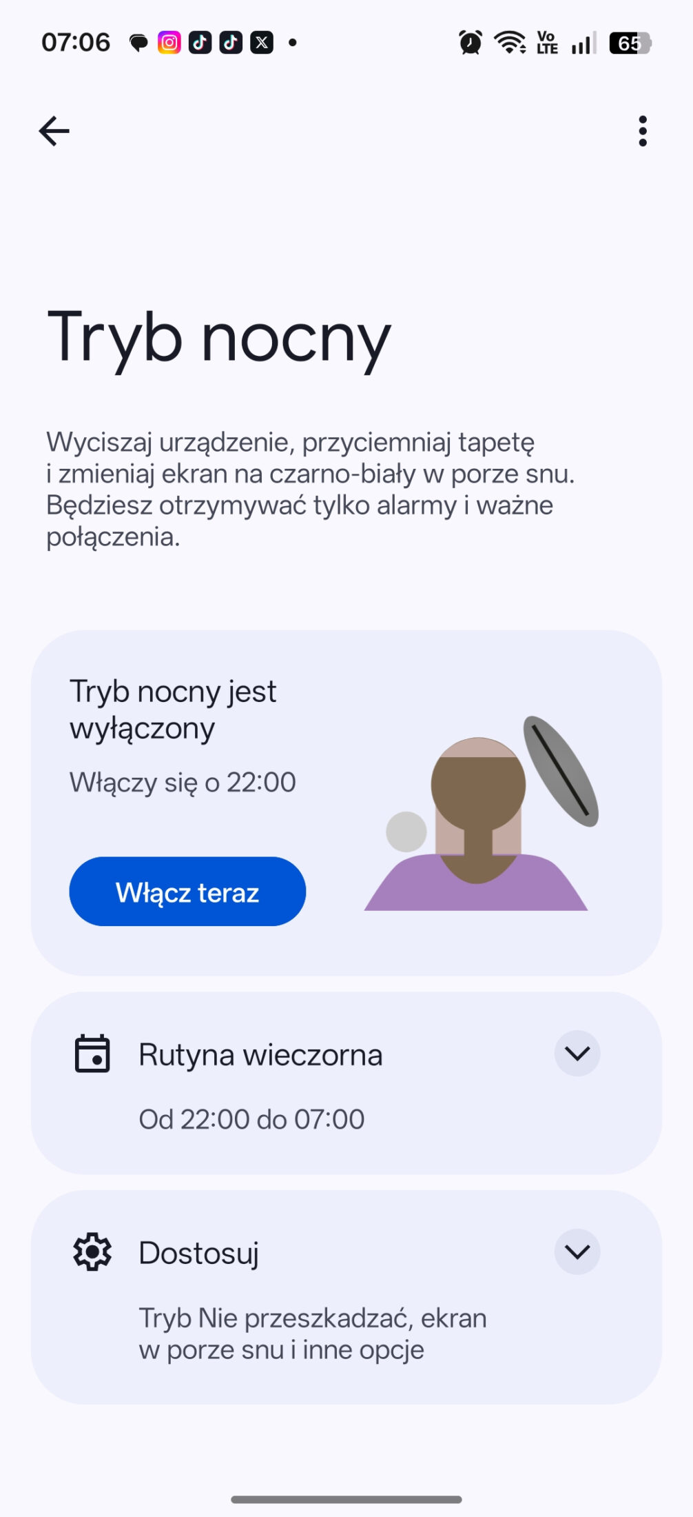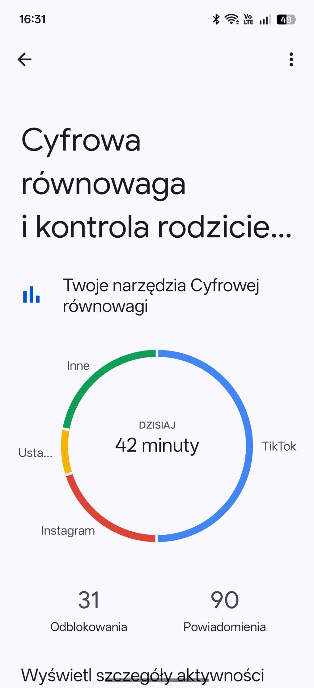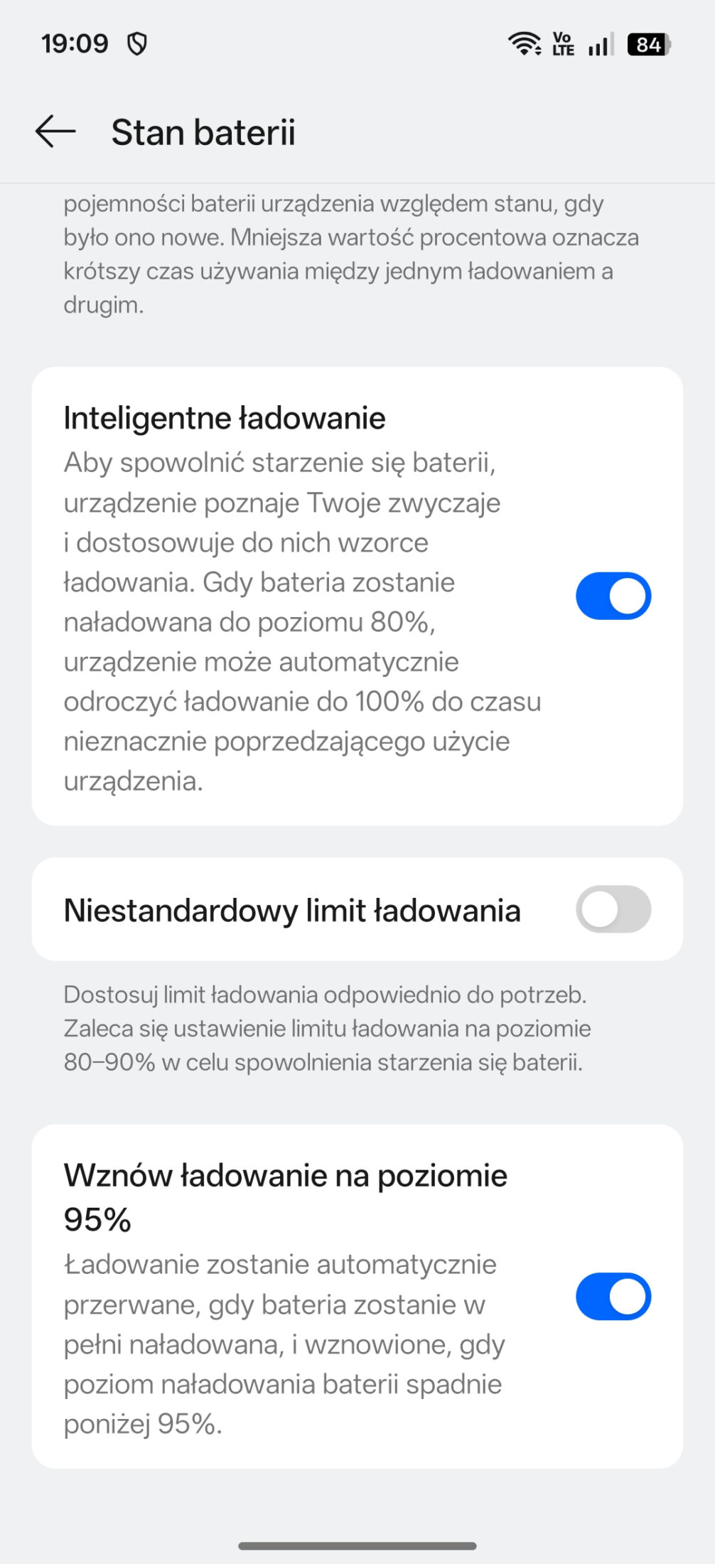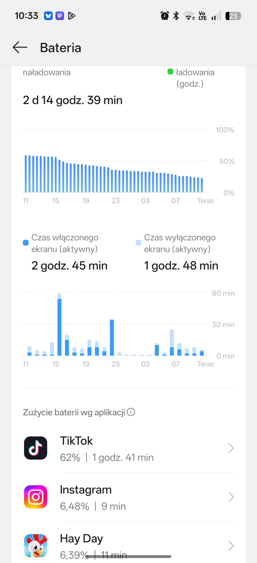 Mocną stroną urządzenia zdecydowanie jest bateria. realme 16 Pro+ wykorzystuje akumulator krzemowo-węglowy o pojemności 7000 mAh, a jednocześnie zachowuje przy tym naprawdę smukłą budowę. W praktyce urządzenie sprawdza się jako sprzęt na długie godziny pracy. Trudno rozładować go w ciągu jednego dnia nawet przy intensywnym użytkowaniu, więc zwykle kończyło się na dwóch do nawet dwóch i pół dnia na jednym ładowaniu. Przyznaję, że czasami po prostu nie miałam ochoty siedzieć na telefonie, więc z pewnością i to miało wpływ na czas działania.