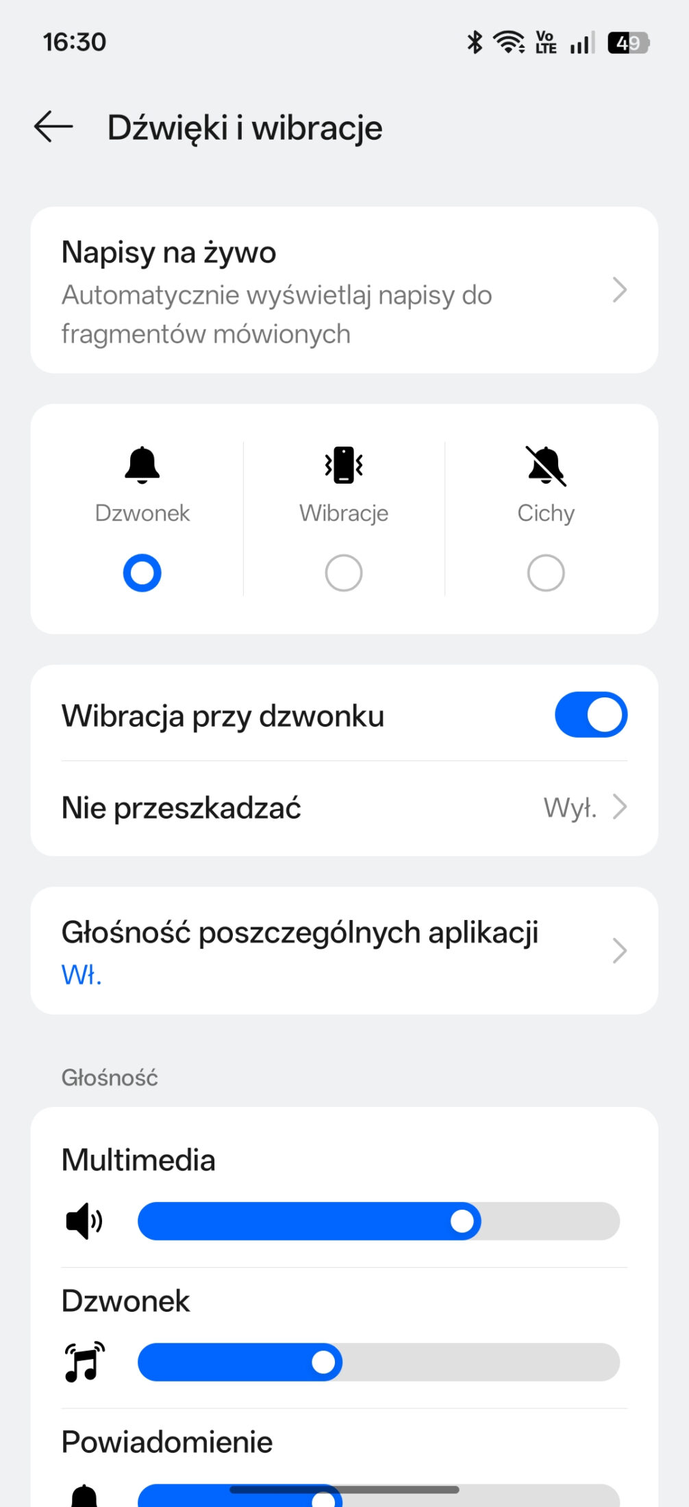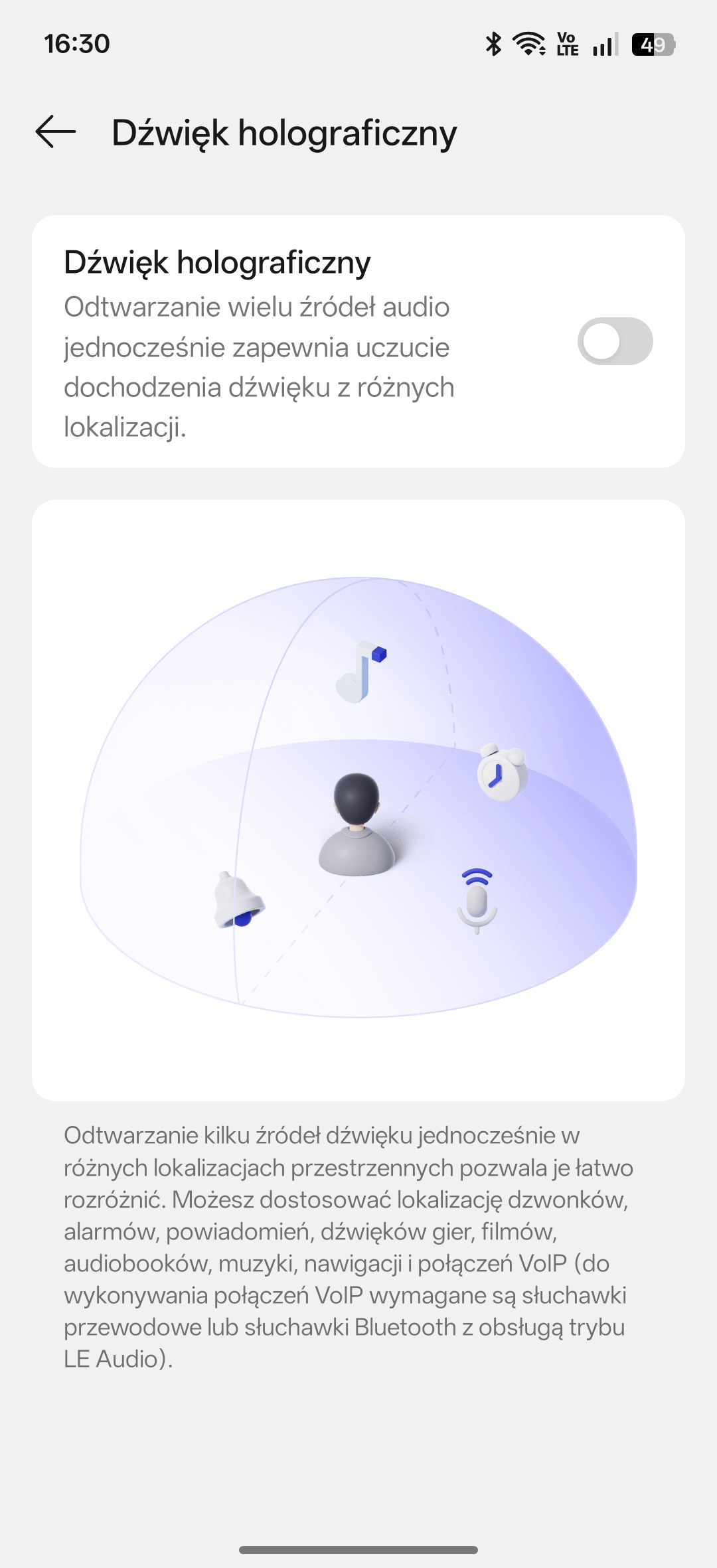 Jeśli chodzi o jakość dźwięku w realme 16 Pro+, to otrzymujemy niezłe głośniki stereo, które dzięki wysokiej głośności fajnie sprawdzają się w przypadku oglądania filmów czy też podczas rozgrywki. Choć dźwięk jest klarowny i wspierany przez wysokiej jakości kodeki Bluetooth, bas pozostaje płytki, a przy maksymalnym poziomie (Tryb Ultra Volume 3000%) brzmienie czasem traci na swojej głębi. W przypadku właśnie tej maksymalnej głośności również nie widzę większej sensowności reklamowania tego trybu, ponieważ niespecjalnie w moim odczuciu poprawia on dźwięk. To nadal jest tylko smartfon, a nie przenośny głośnik, więc w tym przypadku zawsze będzie polecać bezpośrednie korzystanie ze słuchawek.