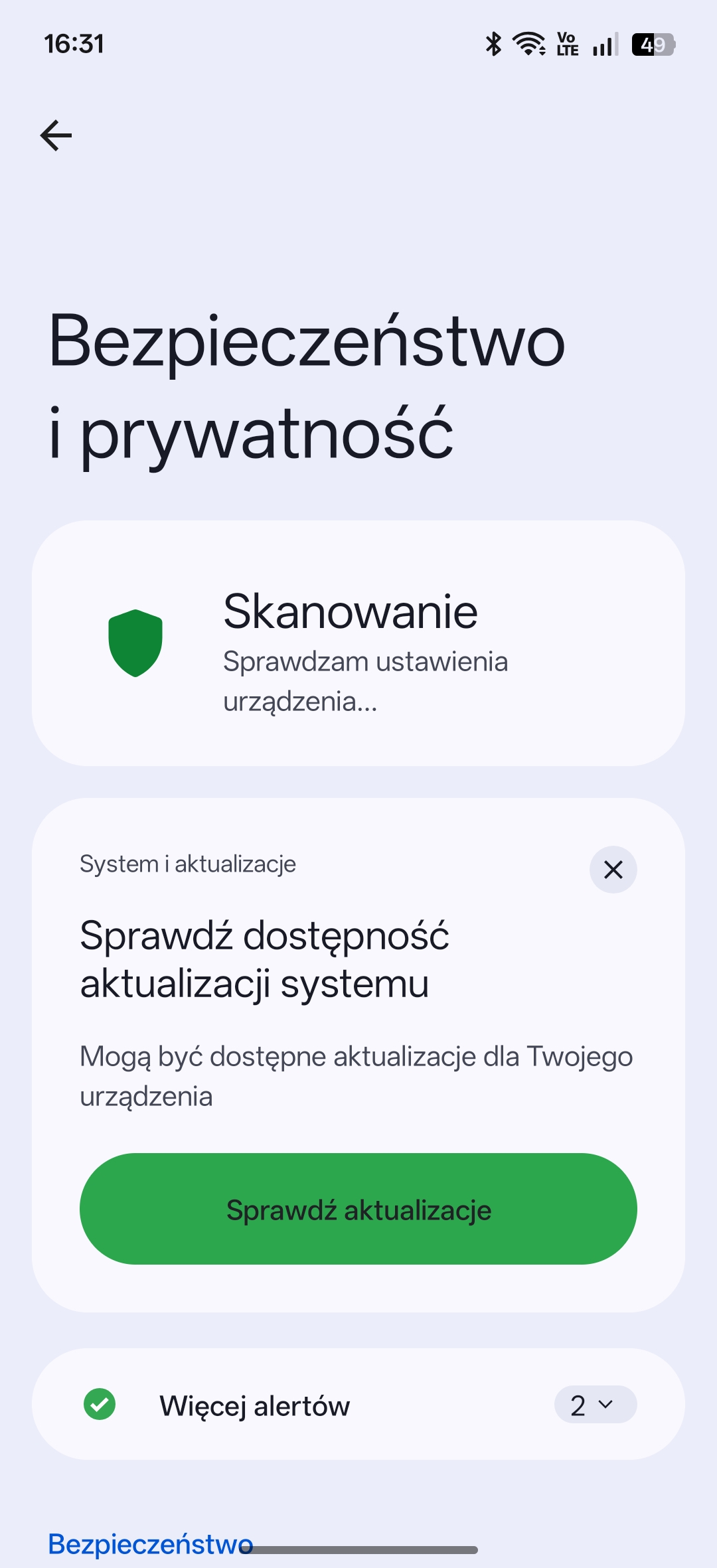 Telefon oferuje standardowe metody odblokowania ekranu, z czego głównym i najwygodniejszym moim zdaniem jest czytnik linii papilarnych w ekranie. Następnie w kolejności do popularności wykorzystywania jest odblokowywanie za pomocą rozpoznawania twarzy. Czytnik w ekranie działa naprawdę bardzo szybko. Jeśli natomiast chodzi o odblokowanie twarzą, to bazuje ono głównie na przedniej kamerze jak w większości przypadków, zatem jest znacznie mniej bezpieczne niż rozwiązania 3D stosowane w innych modelach smartfonów.
