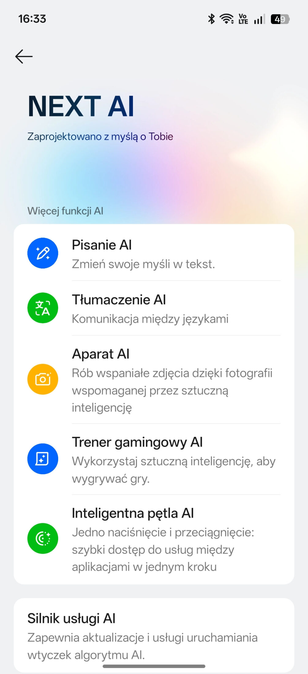 Funkcji AI znajdziemy tu całkiem sporo. Ich głównym celem jest ulepszenie robienia zdjęć oraz uproszczenie codziennego korzystania z telefonu. Najwięcej dzieje się w aparacie, gdzie sztuczna inteligencja analizuje scenę, twarz i oświetlenie, by automatycznie poprawić kolory, kontrast i szczegółowość. Efekt jest taki, że zdjęcia często wyglądają już niemal perfekcyjnie, gotowe do wrzucenia w social media bez potrzeby dodatkowej edycji przed publikacją.